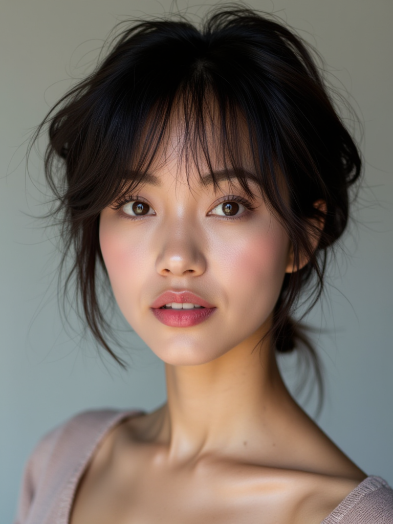 A realistic 30-year-old East Asian woman, 150cm tall, with warm brown eyes and short, dark hair. She has a flirty demeanor, hinting at her romantic partner status and a love for gaming. Her New Age beliefs add a subtle, serene aura, while her Taurus nature suggests a grounded yet passionate spirit. Dressed in comfortable, casual attire that suits her interests, she exudes a confident and approachable vibe.