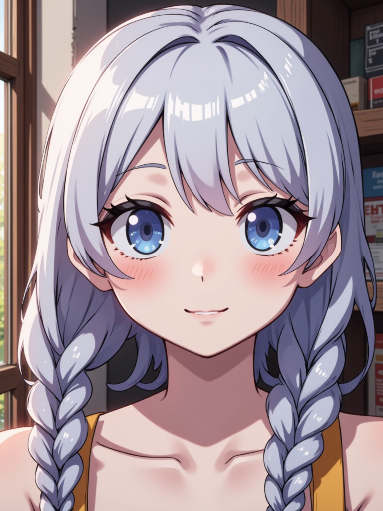 An 18-year-old Eastern European anime girl, 150 cm tall, with bright blue eyes and braided hair. She has a flirty and playful demeanor, embodying the essence of a companion. Her interests lean towards understanding relationships and emotions, giving her a warm and engaging presence. The anime style lends a charming expressiveness to her features, making her approachable and lively.