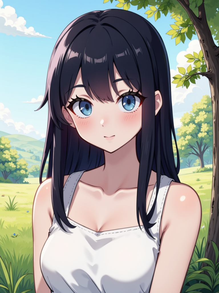 An anime-style young woman of East Asian Furry descent, standing at 160cm with calm blue eyes and straight black hair. She embodies a gentle, family-like connection, her Virgo nature subtly influencing her thoughtful demeanor. Her interest in relationships and emotions, coupled with a spiritual inclination towards Eastern philosophy, creates a serene aura. Dressed in a style that reflects her grounded yet expressive personality, she possesses a quiet grace.
